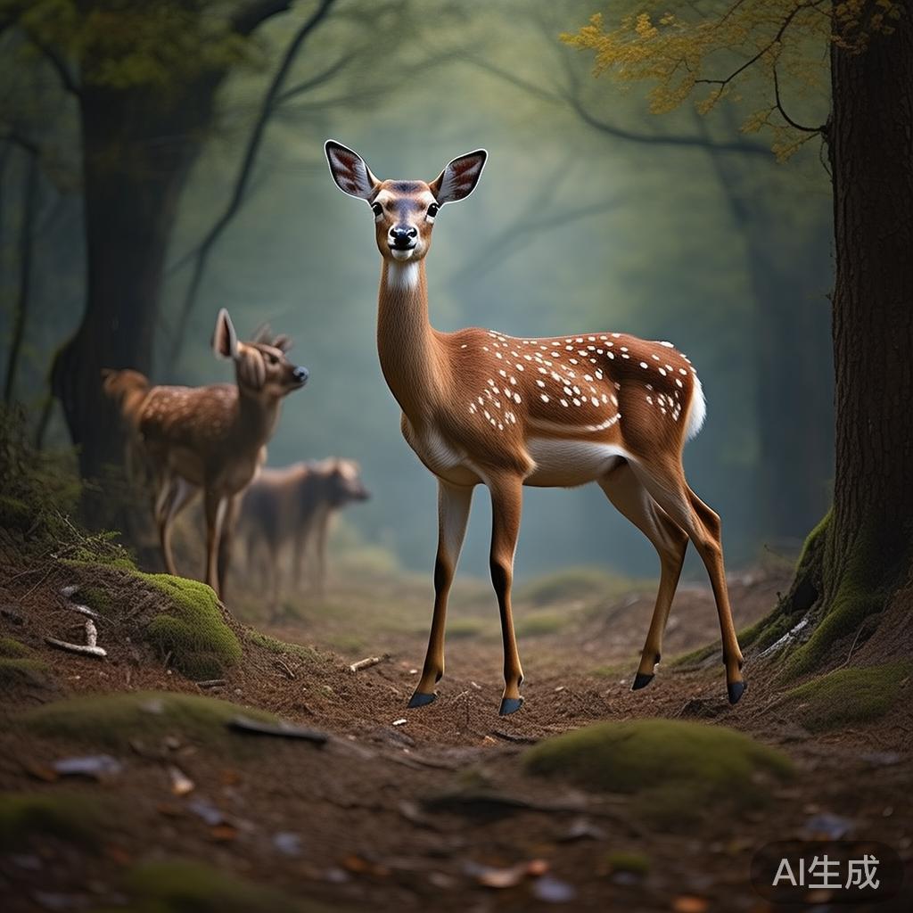 她将一根金色扎带绑在小鹿的脖子上,又编了一根软绳把小鹿牵着,向森林深处走去。他们不停穿行,终于追寻到一座空屋。姑娘朝里面看去,见屋内一片空荡,心中想着:“我们可以住在这里。”于是,她采集了很多树叶和青苔,为小鹿铺上一张柔软的床。每天早晨,她都会外出为自己采摘草根、浆果,还顺便为小鹿带回些嫩草。小鹿吃着她喂来的食物,总是高兴得围绕着她跳动。每当晚上,累了一天的小姐姐,在做完祷告后,会把头轻轻依偎在小鹿的背上,安静入睡。说实话,要是弟弟还在人形,这生活应该算得上简单的幸福了。