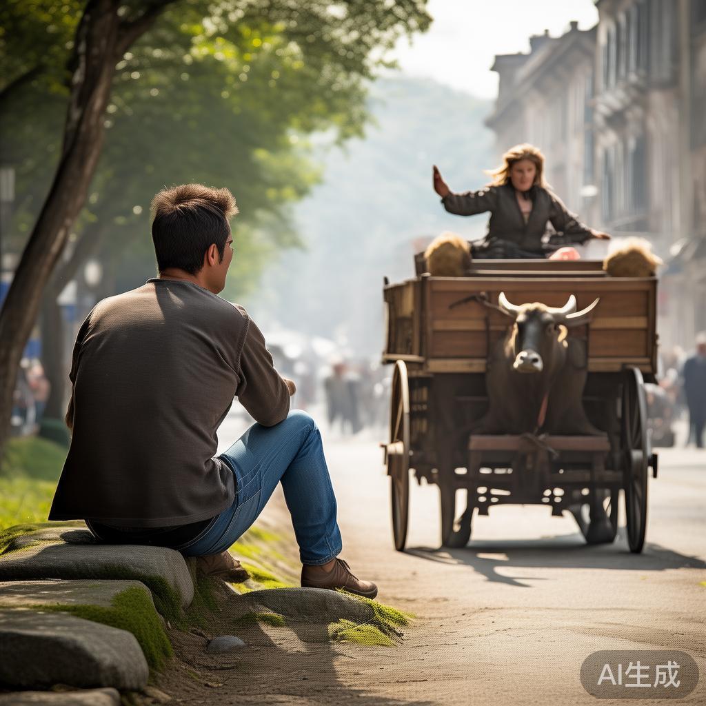 他随即出门,在大马路旁坐石头上等着。不久,一个农妇驾着牛车朝他驶来,她姿态独特,不是坐在草堆上,也不是牵着牛,而是立在车中间。农夫心中一动,心想:“找到目标了!”