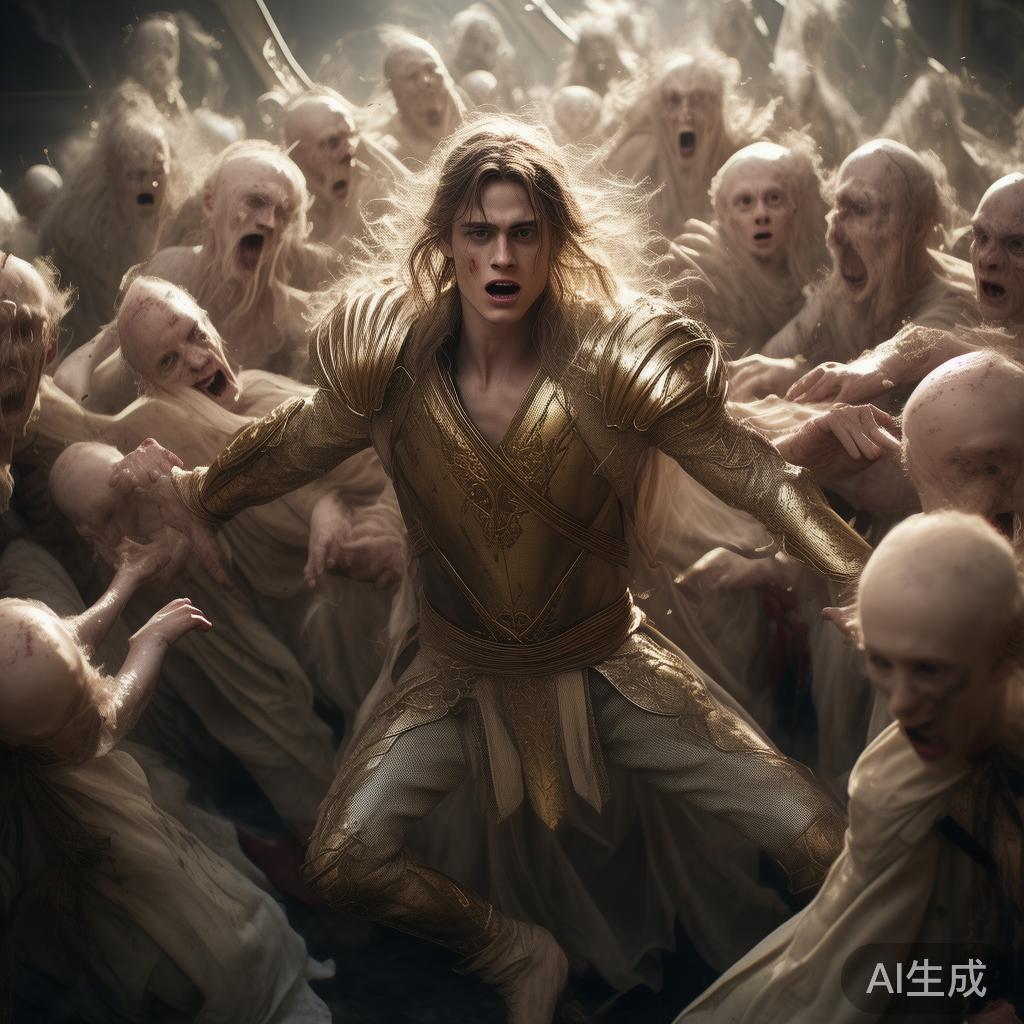 五湖四海的鬼魅们转眼之间竟如潮水般向王子攻击,扯扯拉拉,被折磨得满身是伤,但他依然选择沉默。最终,魔鬼们撤退,而王子因体力透支瘫倒在地,动弹不得,连头都抬不起。