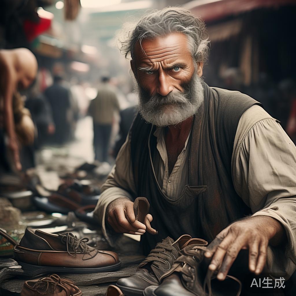 商人一愣,心想这人简直无理取闹,可不能耽误正事,于是拒绝了。他们俩吵得不可开交,围观的人越来越多。虽然有人愿意出面调解,让他明天再还钱,但这一波折让他狼狈不堪。争执后,他的鞋子也被踩坏了,只好逃去找补鞋匠。