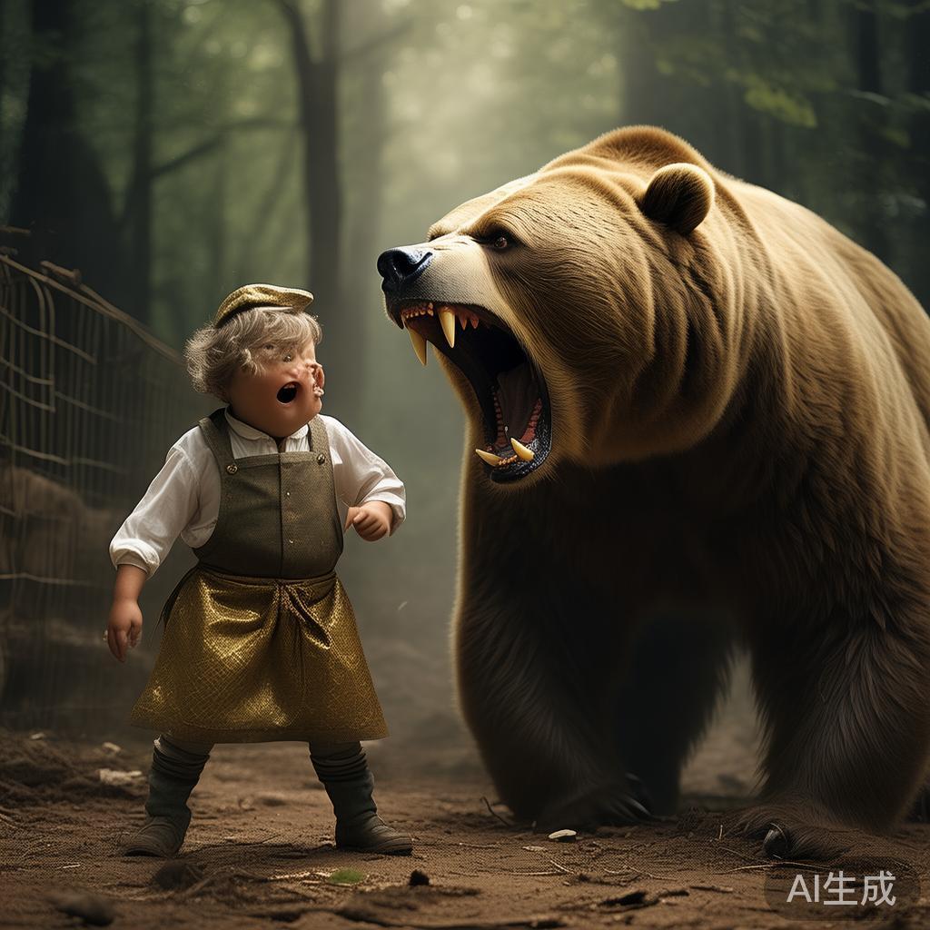 “小子,别动!稍安勿躁,我很快就会教你怎么冷静。”小裁缝故作镇定,从口袋里掏出一些坚果,开始慢吞吞地吃起来。熊看到这一幕,也乖乖试图咬几颗坚果,结果自然是一场闹剧。小裁缝用卵石欺骗了它,最后,熊竟然无奈地对小裁缝求助:“喂,帮我咬一下!”